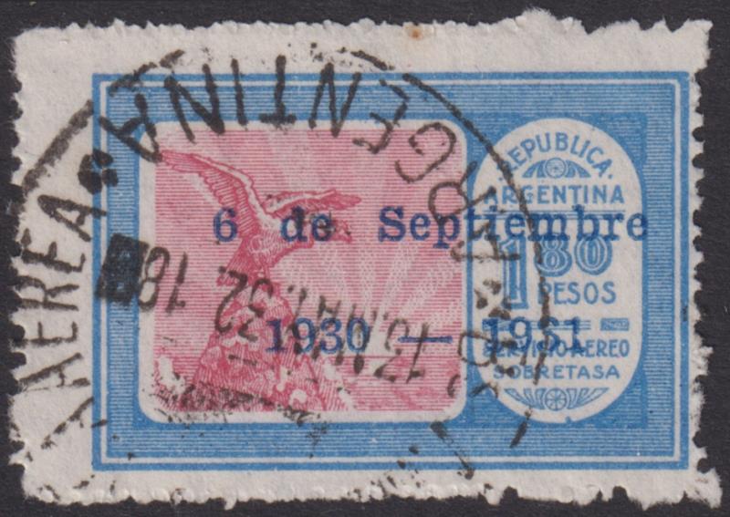 253 U imageBirds: Argentina 1931 1P80c "6 de Septembre 1930-1931" ovpt on 1928 Air (condor on mountain top) red & blue. SG 627. Cat £34. FU. (Image)