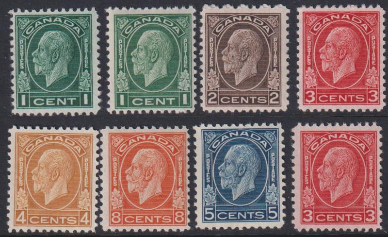 Canada 1932 1c-8c GV short set plus extra shade of 1c. SG 319-24. Cat £112+. MUH. (Image)