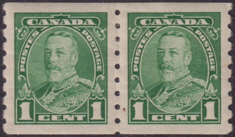 Canada 1935 1c GV coil pair imperf x p8. SG 352. Cat £42. Mint. (Image)
