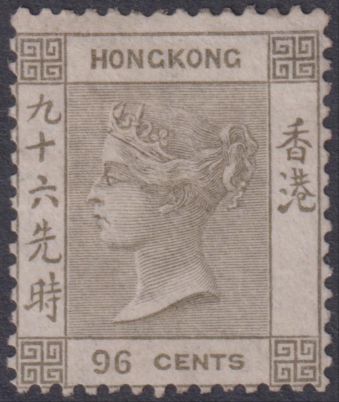 2716 M imageHong Kong 1865 96c QV brownish grey, crown CC wmk. SG 19. Cat £1600. Mint. (Image)