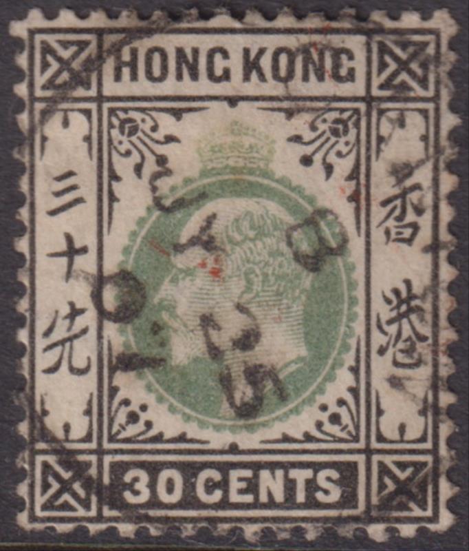 Hong Kong 1903 30c EVII dull green & black, crown CA wmk. SG 70. Cat £30. FU. (Image)