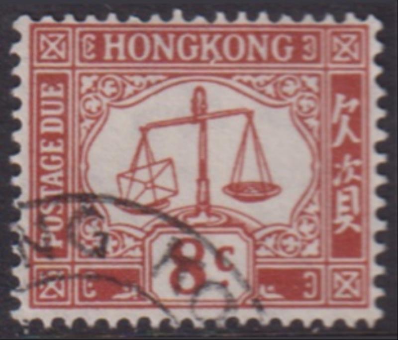 Hong Kong 1946 8c Postage Due. SG D9. Cat £38. FU. (Image)