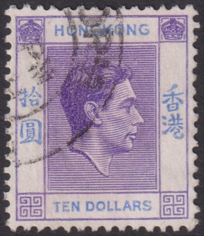 Hong Kong 1946 $10 GVI deep bright lilac & blue. SG 162a. Cat £80. FU. (Image)