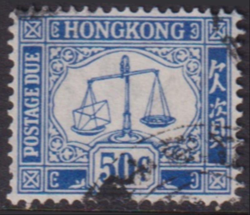 Hong Kong 1947 50c Postage Due. SG D12. Cat £18. FU. (Image)