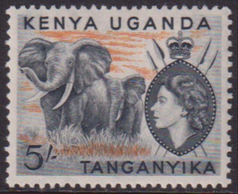 2824 * imageKUT 1954 5/- QEII & Elephants. SG 178. Cat £45. MUH. (Image)