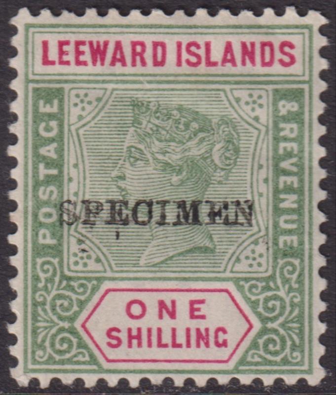 2828 S imageLeeward Isl 1890 1/- QV green & carmine, SPECIMEN. SG 7s. Cat £35+. (Image)