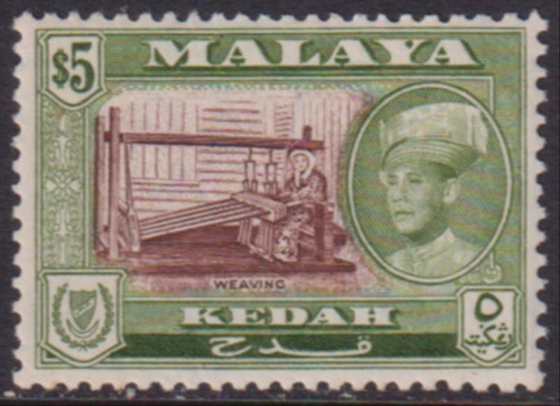 2840 * imageMalaya-Kedah 1957 $5 Weaving. SG 102. Cat £60. MUH. (Image)