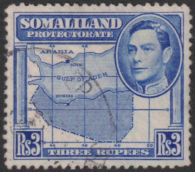 2914 U imageSomaliland Protectorate 1938 3R GVI & Map bright blue. SG 103. Cat £75. FU. (Image)