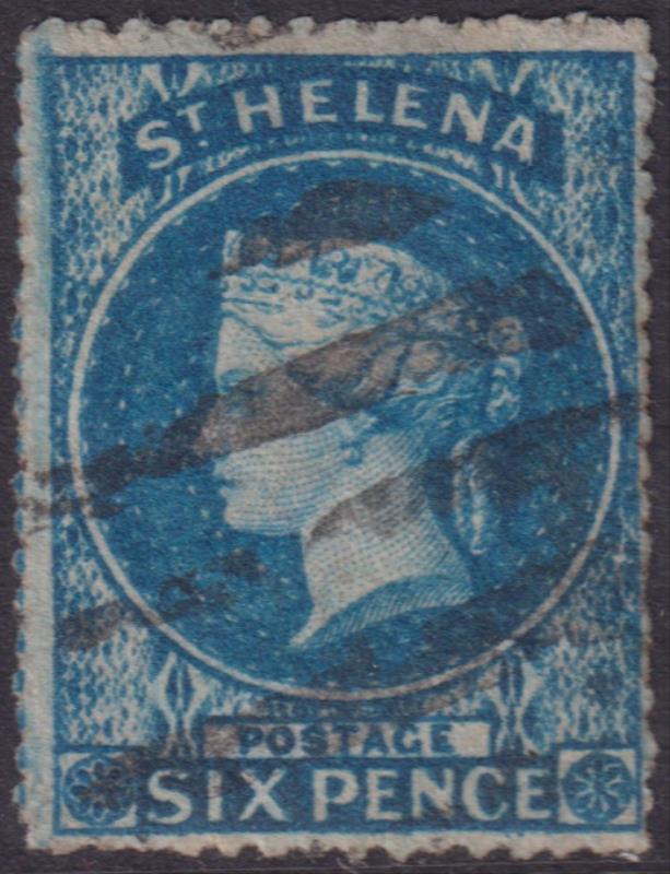 2934 U imageSt Helena 1861 6d QV blue, rough p14 to 16, large star wmk. SG 2a. Cat £160. GU. (Image)