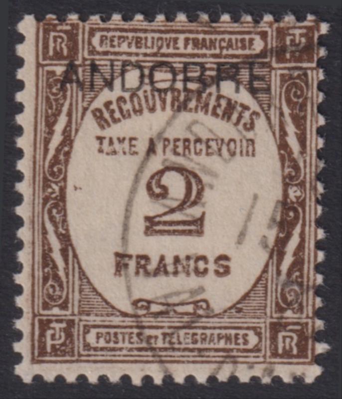 2969 U imageAndorra 1932 2F "Andorre" ovpt Postage Due, bistre-brown. SG FD37. Cat £325. FU. (Image)