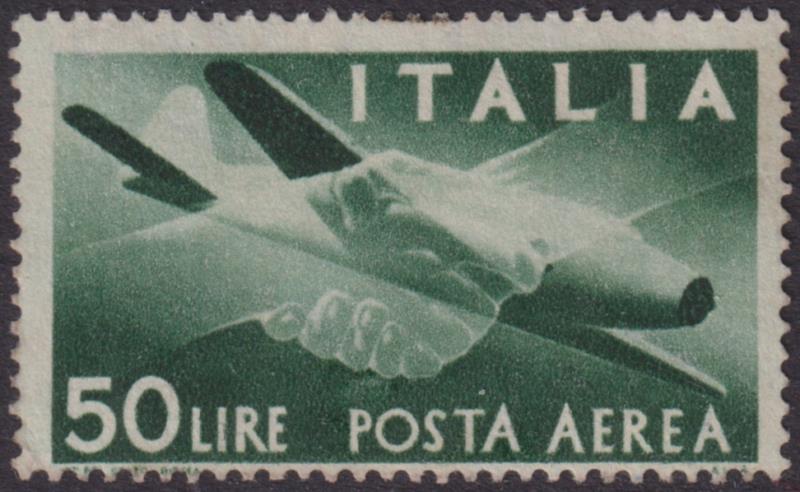 Italy 1946 50L Air deep green. SG 677. Cat £45. Mint. (Image)