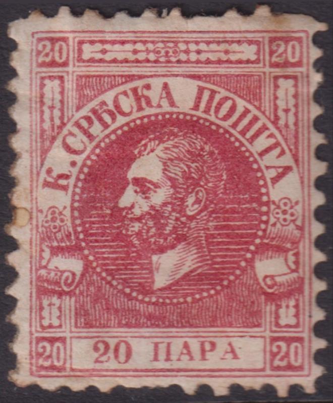 3259 M imageSerbia 1866 20p Prince Michael red, original gum. SG 2. Cat £22. Mint. (Image)