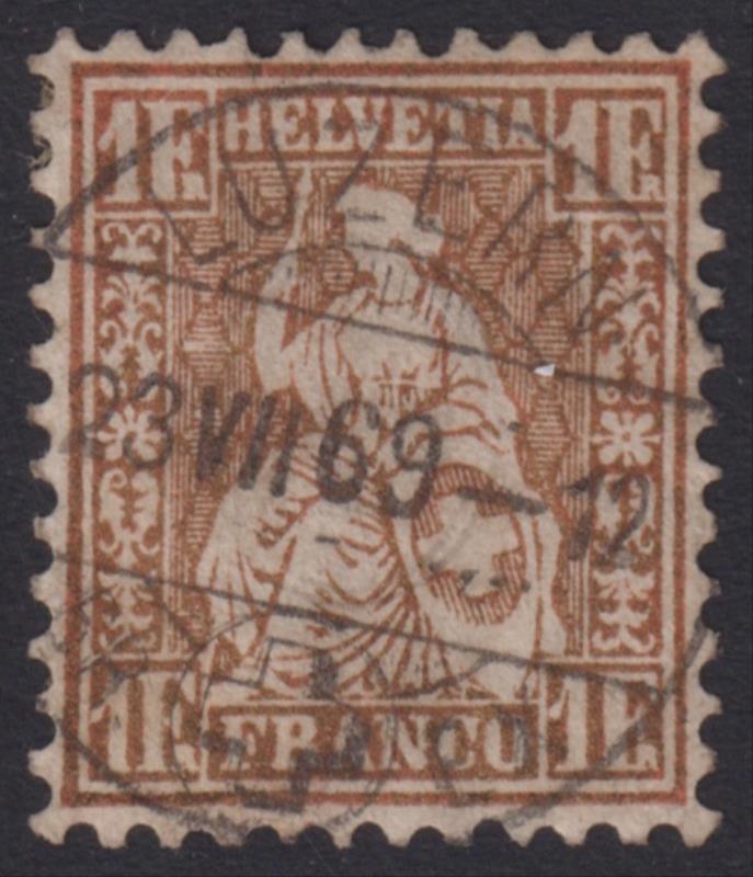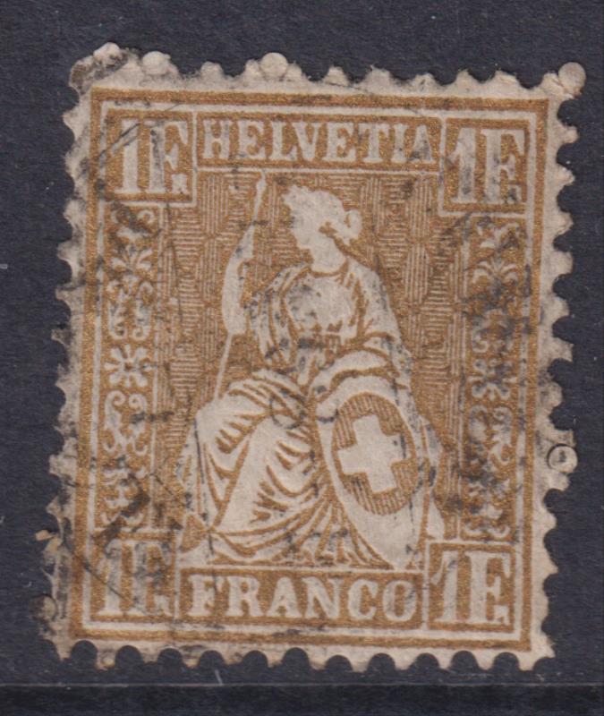 Switzerland 1863 1f Helvetia bronze-gold, fine example clearly dated (23.VII.69) cds. SG 60. Cat £500. FU. (Image)
