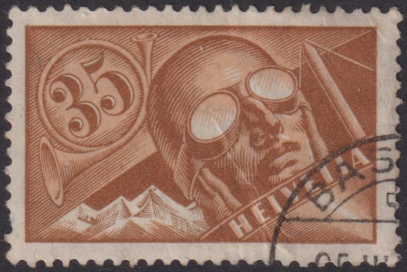 Switzerland 1923 35c Airmail cinnamon & light brown (pilot). Parcel creasing, short perf. SG 319. Cat £75. FU. (Image)