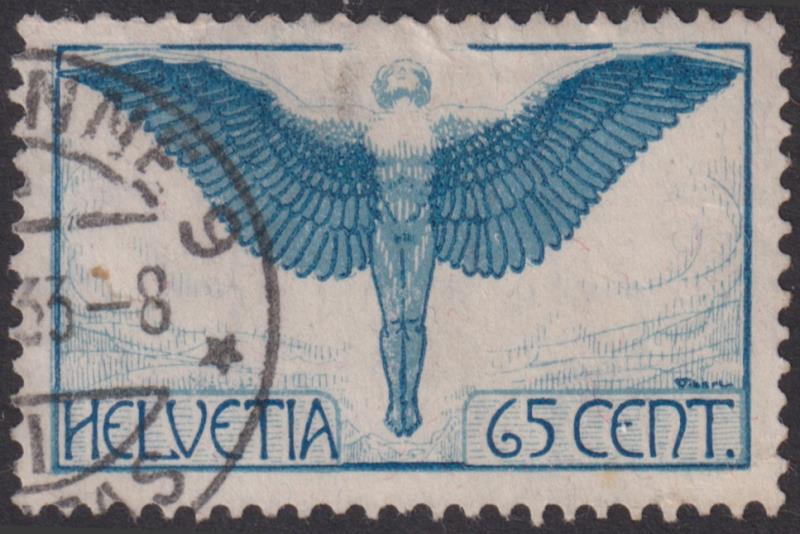 Switzerland 1924 65c Airmail (Icarus) slate-blue & turquoise-blue. Original issue. SG 325. Cat £42. FU. (Image)