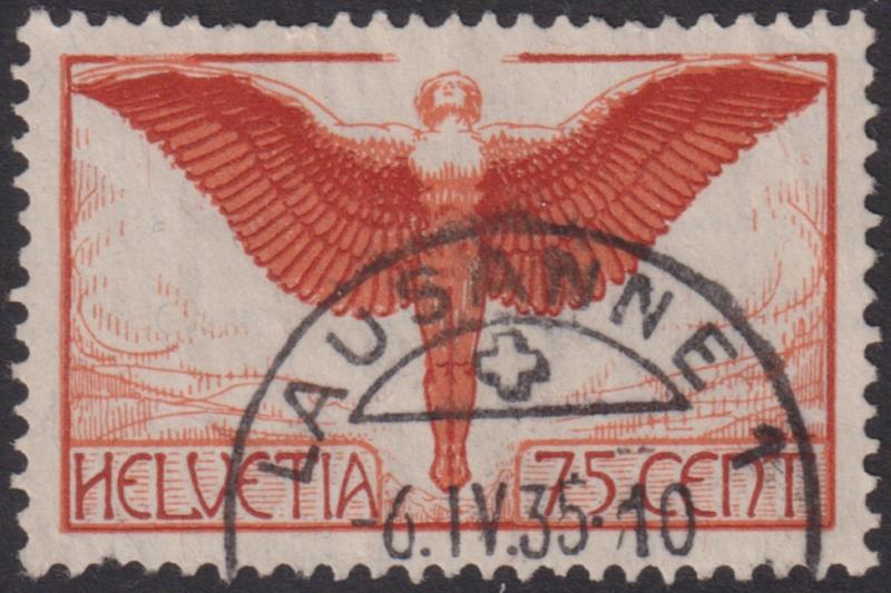 Switzerland 1924 75c Airmail (Icarus) red-orange & claret. Original issue. SG 326. Cat £110. FU. (Image)