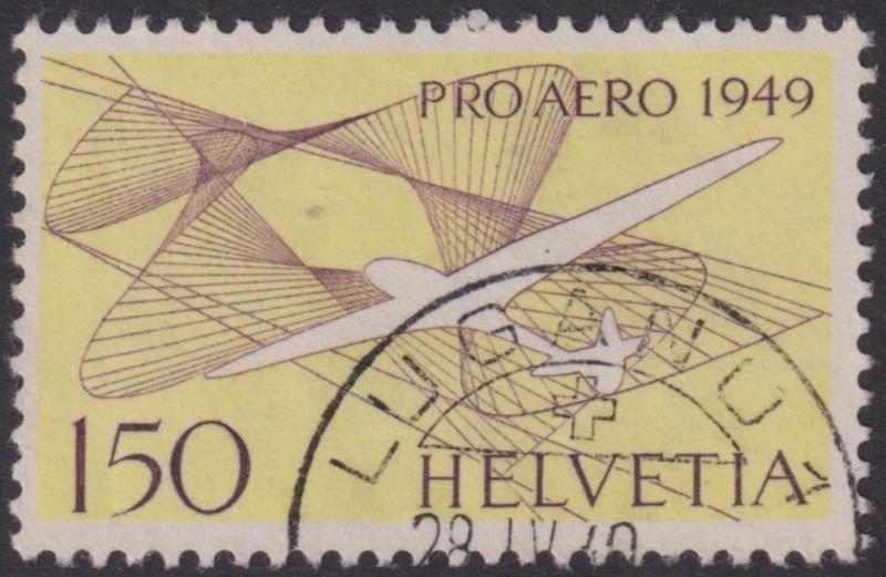 3303 U imageSwitzerland 1946 1F50 Airmail "Pro Aero" special flights (glider). SG 466. Cat £46. FU. (Image)