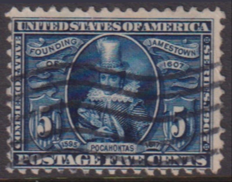 3314 U imageUSA 1907 5c Jamestown Expo. SG 337. Cat £36. GU/FU. (Image)
