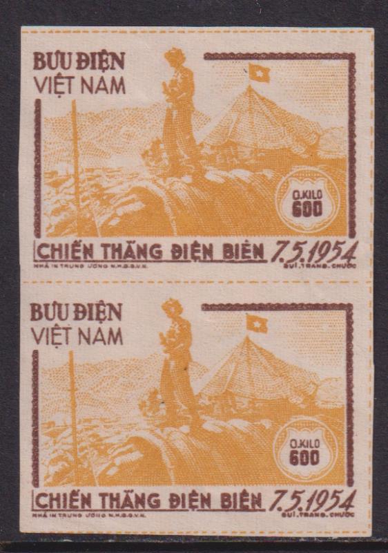 3331 * imageVietnam-North 1954 0.600k Dien Bien Phu official imperf vert pair. SG NO24. MUH. (Image)