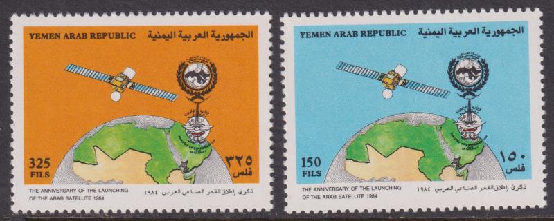 3339 * imageYemen Arab Republic 1986 1st Anniv Arabsat Communications Satellite set. SG 770-1. Cat £20+. MUH. (Image)