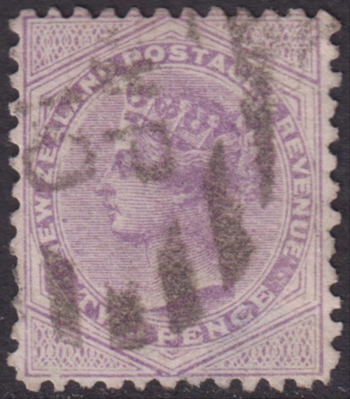 Lyell (WP 1870-1963) good fairly complete "WP/10" barred obliterator on 2d SSF, p12 x 11½. Scarce. Gold mining. (Image)