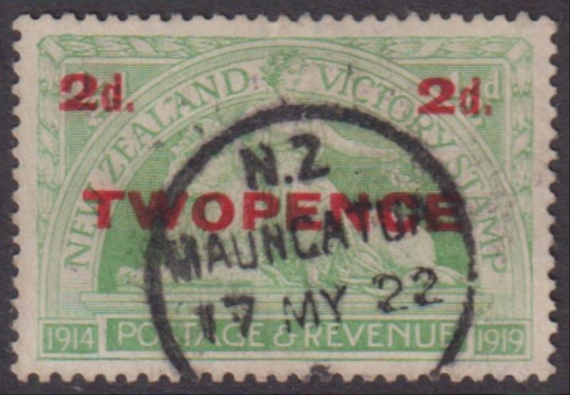 Maungatua (DN 1867-1929) near complete A-class cds 17 MY 22 on 2d Victory ovpt stamp. Wooders 6. (Image)