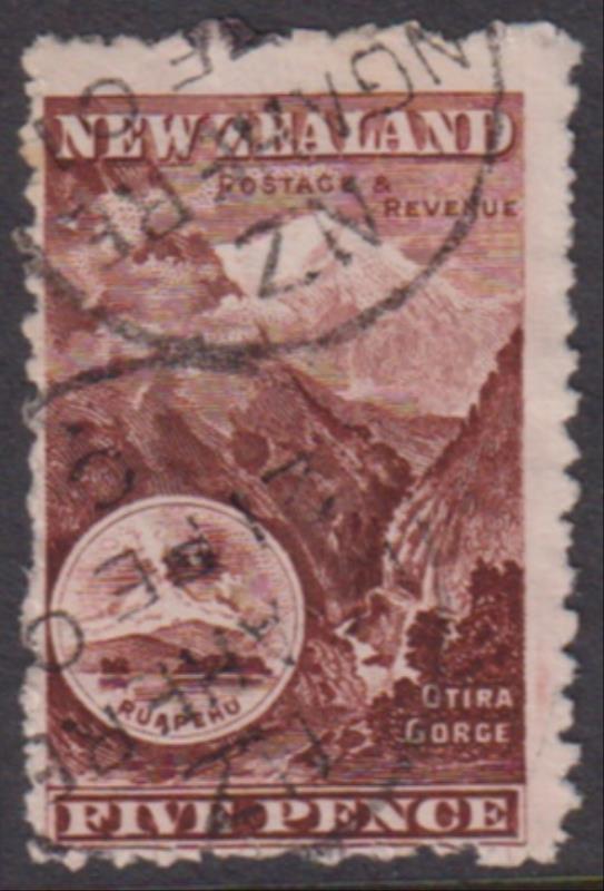 Ngahere (GM 1887-1988) fine 21 Feb 1901 "A" class cancel on 5d Otira, p11, no wmk. Wooders 4. (Image)