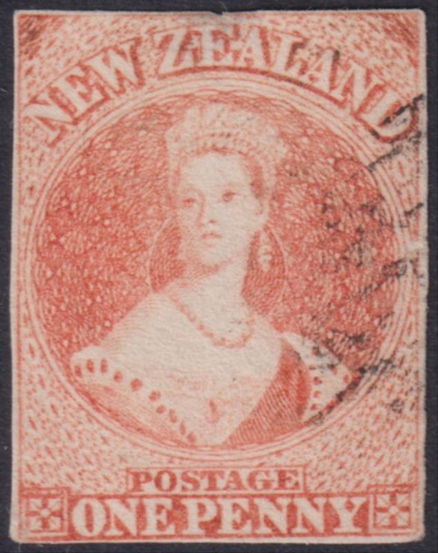 516 U imageFFQ Chalon Chalon 1d dull orange, imperf 2½ margins, thick white no wmk paper, light #1 obliterator but some signs of oxidation. SG 8. Cat £900. VFU. (Image)