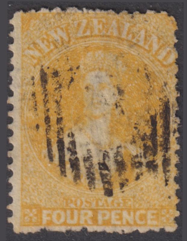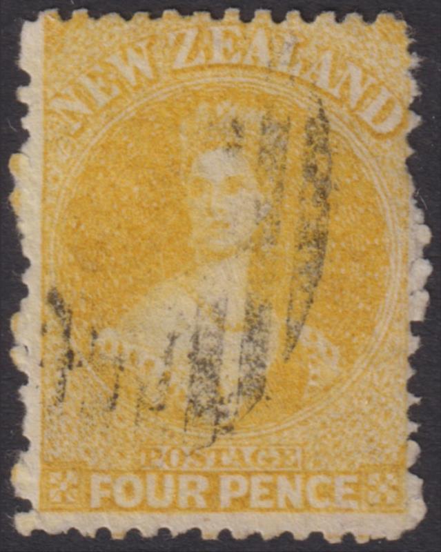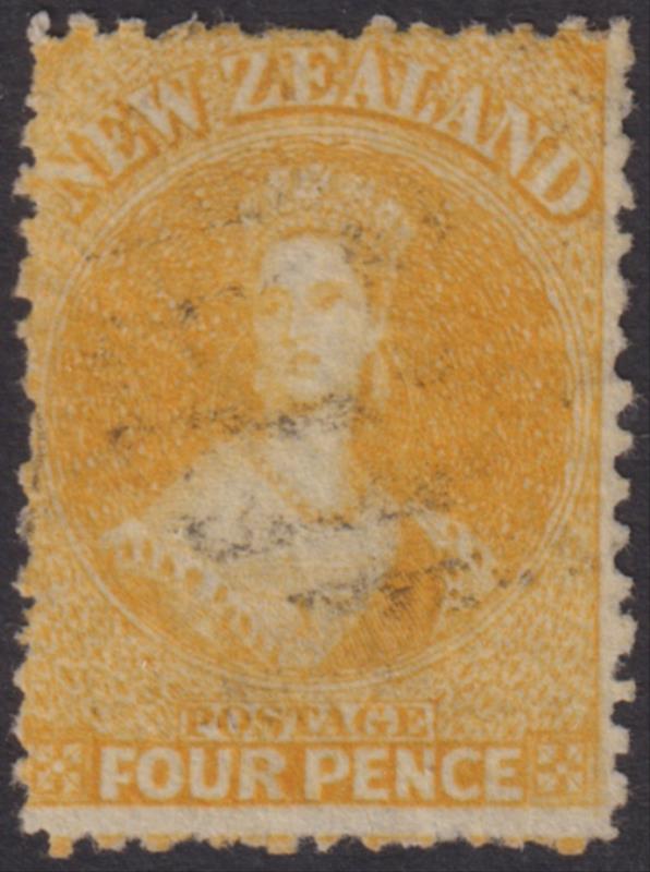 FFQ Chalon 4d yellow, p12½, star wmk, a few rough perfs. SG 120. Cat £225. FU. (Image)