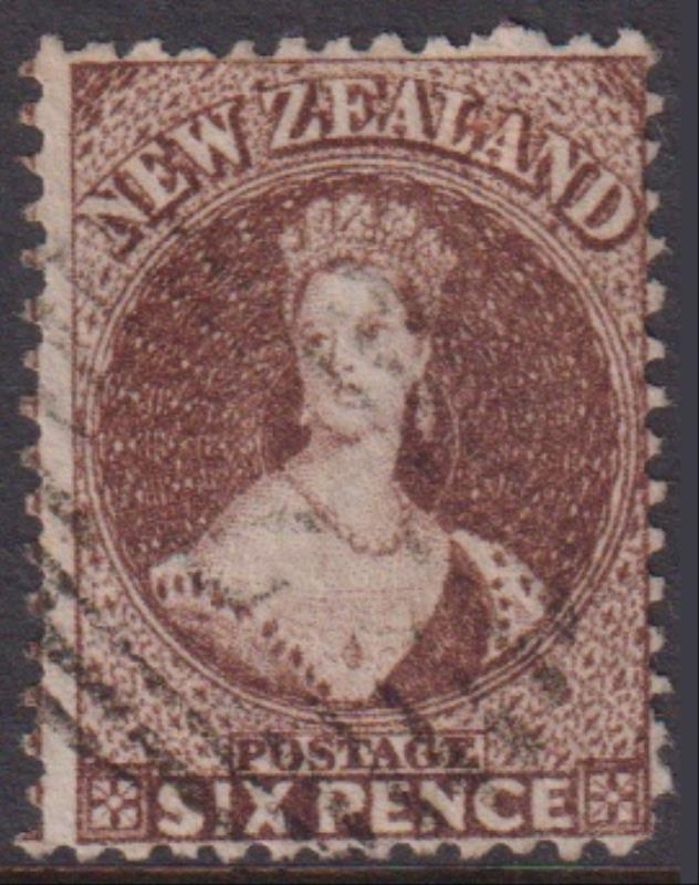 FFQ Chalon 6d brown, p12½, star wmk, a few short perfs (top). SG 122a. Cat £50. FU. (Image)