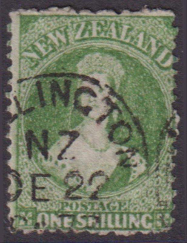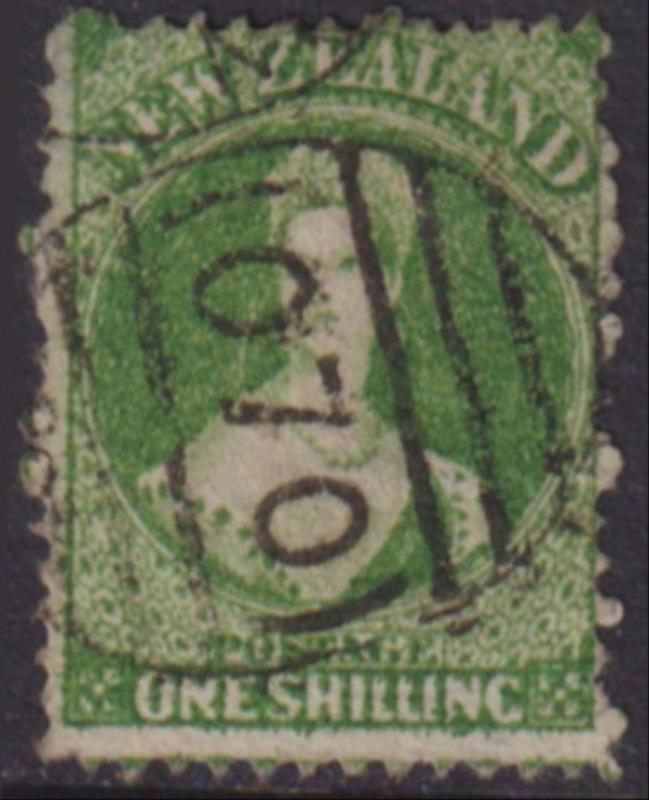 FFQ Chalon 1/- green, p12½, star wmk, crisp dated cds part on face. SG 124. Cat £180. GU. (Image)