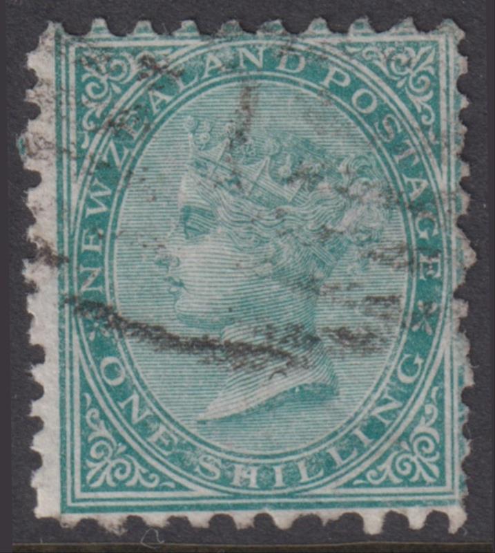 1878 1/- FSF green, p12 x 11½, o/c to left. Light barred cancel. CP C6c. Cat $140. GU/FU.