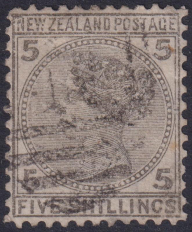 1874 5/- FSF grey, messy smudged cancel, minor faults. Jury cat $900. GU.