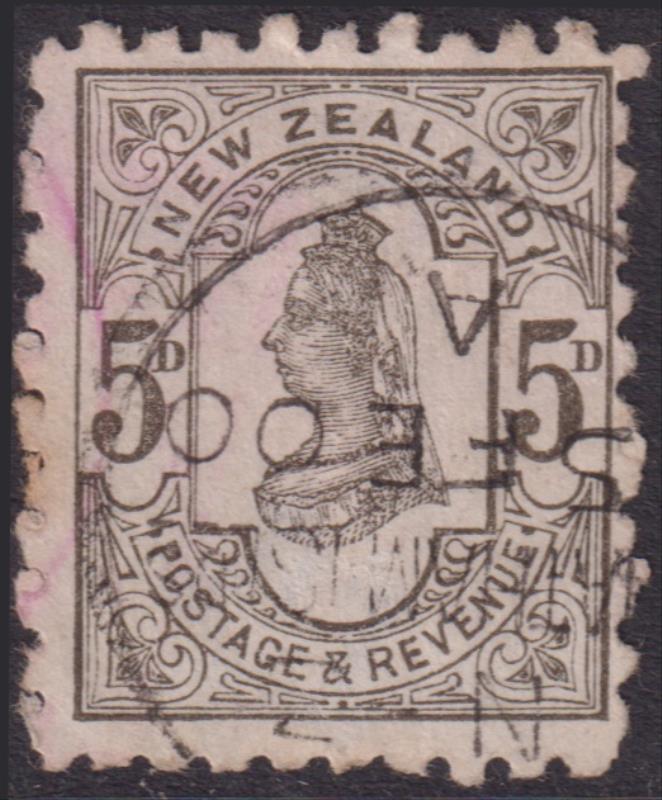 1893 1/- SSF, p10 advt "Use / Kaitangata ..." in red-brown, scruffy appearance. CP D10e. Cat $185. GU. (Image)