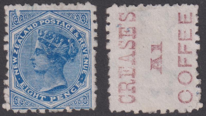 1893 8d SSF, p10, advt "Lattey, Livermore & Co ...", clean image, full gum. Nice example. CP DA9c. Cat $200. Mint.