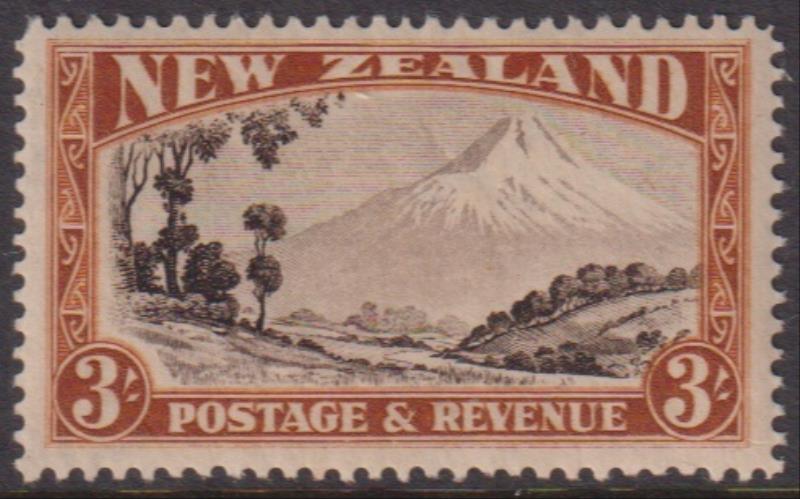 1935 3/- Mt Egmont, p14-13 x 13½, single wmk, w/c. CP L14a. Cat $80. Mint. (Image)
