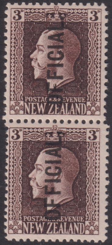 1915 3d GV deep chocolate vert 2-perf pair, top 1 LH mint, lower 1 MUH. CP KO4c. Cat $115. (Image)
