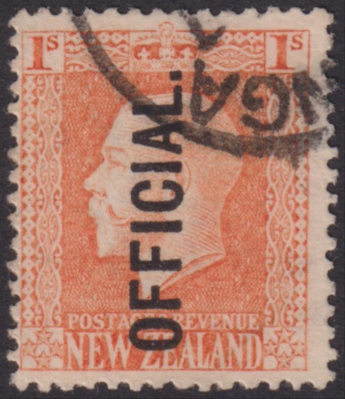 1916 1/- GV salmon shade, p14 x 14¼. CP KO12b(3). Cat $75. GU/FU. (Image)