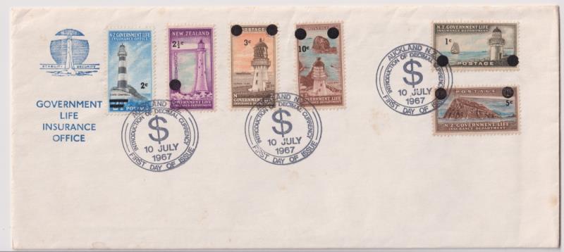 1967 Decimal currency ovpt set of 6 on Life Ins hand addressed FDC. Jury cat $120.