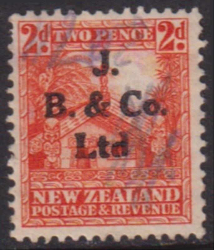 c1936 J./B. & Co./Ltd security ovpt on 2d pictorial. Kiwi R654. (Image)