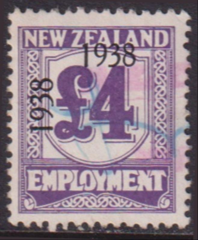 1939 £4 Employment violet, canc (part) "New Zealand Breweries Ward's Branch". Kiwi cat $65.