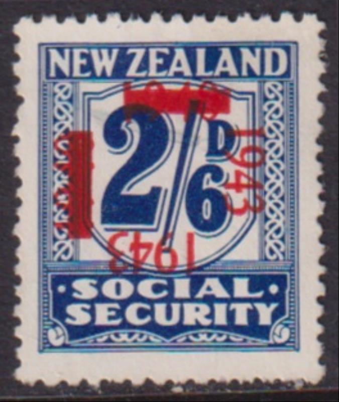 1943 on 1940 2/6d Social Security. Kiwi RG645. Cat $20. (Image)