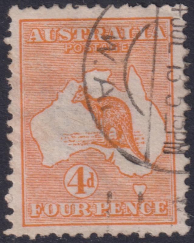 1913 4d Roo orange, 1st wmk. SG 6. Cat £27. FU. (Image)