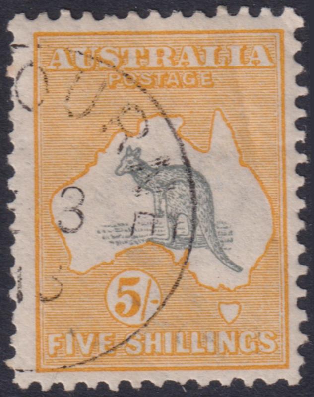 1913 5/- Roo, 1st wmk, (CTO). SG 13. Cat £225. FU. (Image)