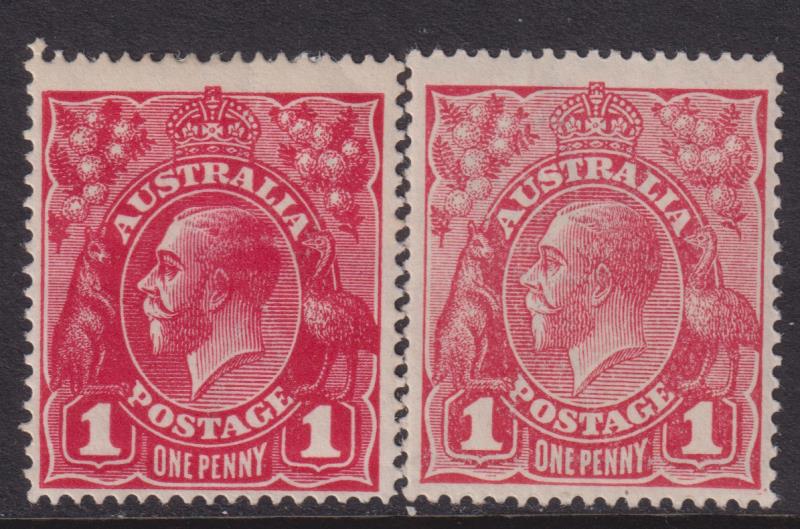 1914-17 1d GV carmine-red & also pale carmine, die I, p14¼ x 14. SG 21c, 21cc. Cat £29. Mint. (Image)