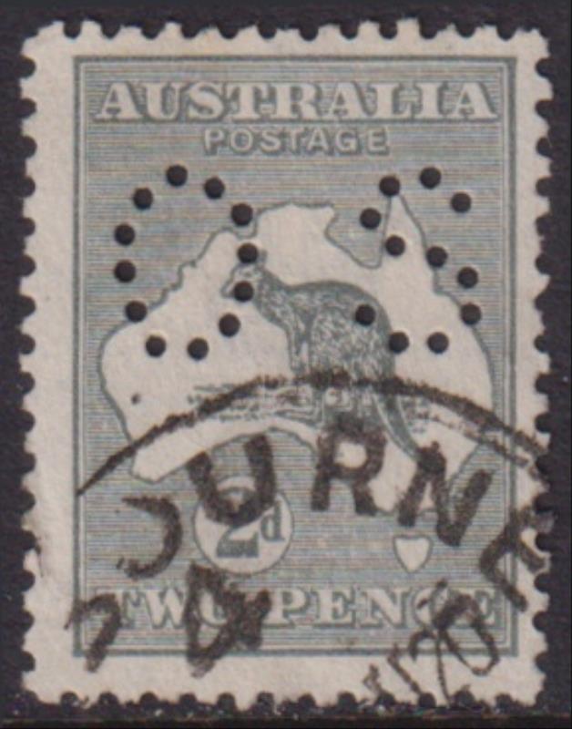 1915 2d Roo, die IIA, perfinned small OS. SG O43d. Cat £28. GU/FU. (Image)