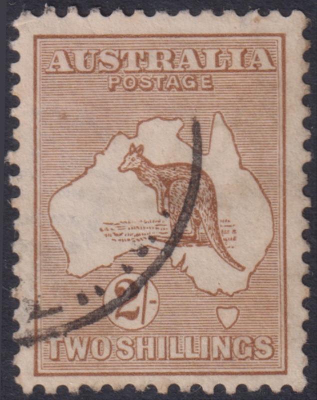 1915 2/- Roo brown, 2nd wmk, small brown adhesion mark on reverse. SG 29. Cat £225. FU. (Image)