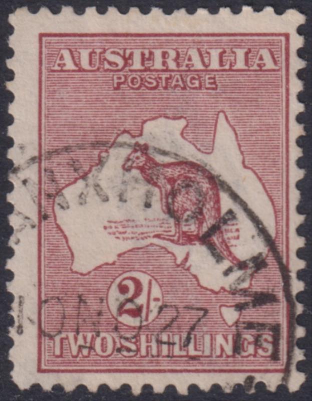 1923 2/- Roo maroon, 3rd wmk. SG 74. Cat £32. FU. (Image)