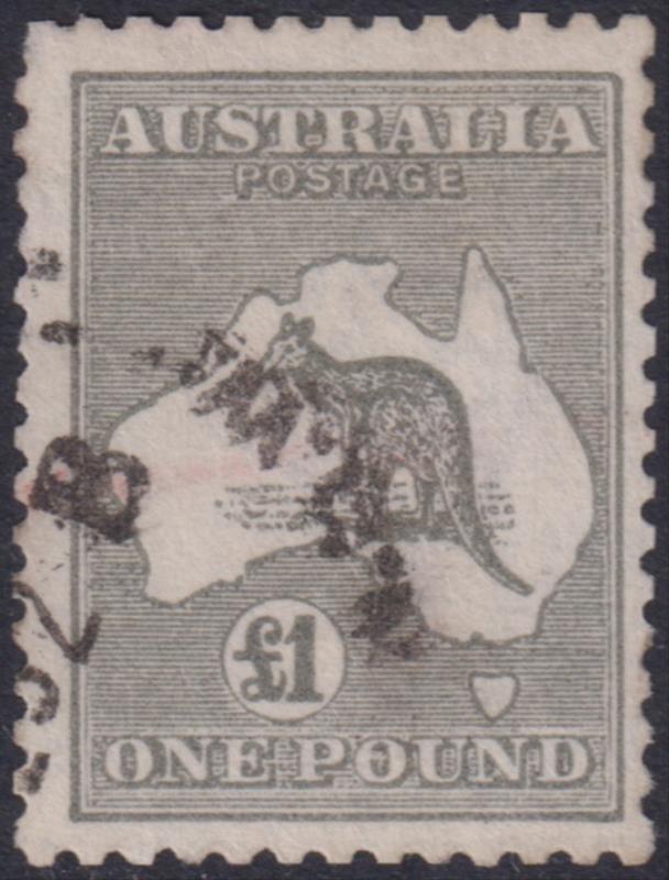 1924 £1 Roo grey, 3rd wmk. SG 75. Cat £375. GU nearly FU. (Image)