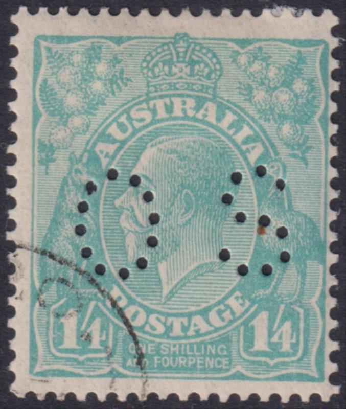 1927 1½d Canberra, 1928 3d Kookaburra, 1929 3d Air, OS perfin. SG O112-3, 119. Cat £44. FU. (Image)